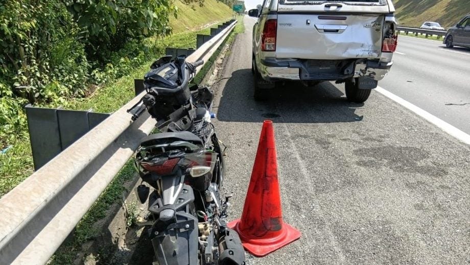 一辆警方的丰田Hilux四轮驱动车相信是引擎故障而停靠在南北大道的紧急车道,孰料却遭到随后而来的摩托车撞击,37岁的摩托车骑士(军人)当场死亡!