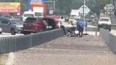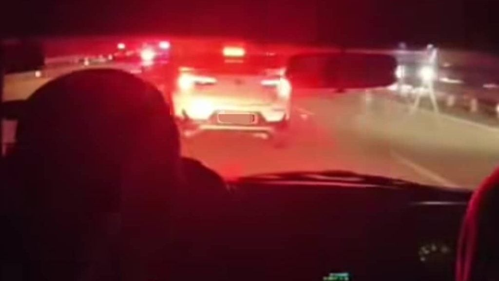 南北大道美冷南下休息站发生一起相信是警方追捕休旅车司机的行动,最终遭4名男子制伏,其中一人更是持手鎗要求司机下车。